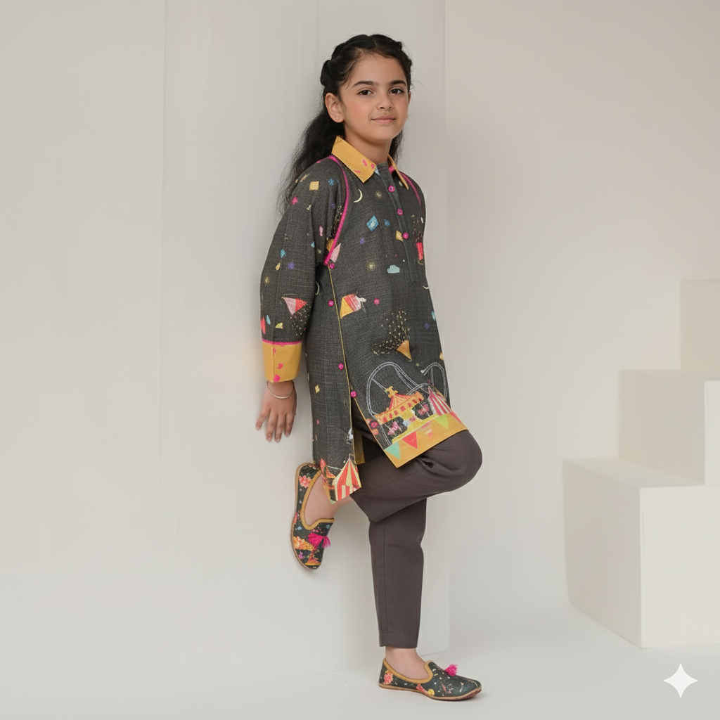 Kids kurta set, lawn, 2 piece, children's clothing, summer wear, ethnic wear, traditional, comfortable, breathable, casual wear.